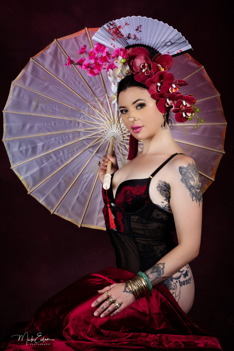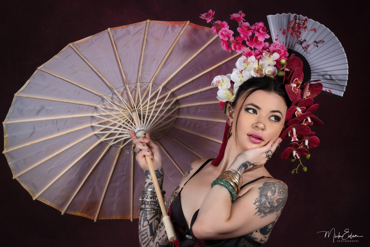 Another great shoot with Jade. This time we worked around an Asian influence with the use of many props including fans, umbrellas, katanas and a pretty but simple headdress.