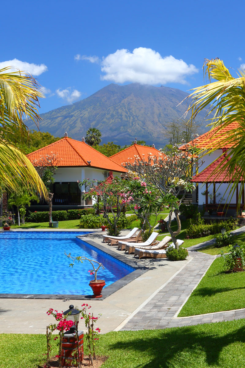 Tulamben is a small seaside village about 100km from Denpasar in the North Eastern region of Karangasem near the village of Kubu. It is situated directly under the shadow of Mt. Agung, which has erupted many times in the past with lava flows through this area. The villages name is a reference to its rocky shoreline and comes from the word "batulambih" which means "many stones", sort of. This has shortened over time to the name of Tulamben, which remains today. I am not sure of the population but I would guess it would only be in the few hundreds and, apart from fishing, the main occupation for the village would now be linked in some way to the dive industry that has developed here over many years. The village itself extends along either side of the road for about a kilometre and is lined with numerous restaurants and places to stay. Most of the resorts are also along heres but set back a bit and on the ocean and there is also a large parking area where the divers from other parts of Bali gather to dive the wreck of the Liberty. Tulamben is a quiet village and winds down fairly early in the night but there are a few places with live music from the local guys that are worth a look so ask around. A feed and a few drinks can be had here while you listen to the guys play their instruments and sing some of the classics.
